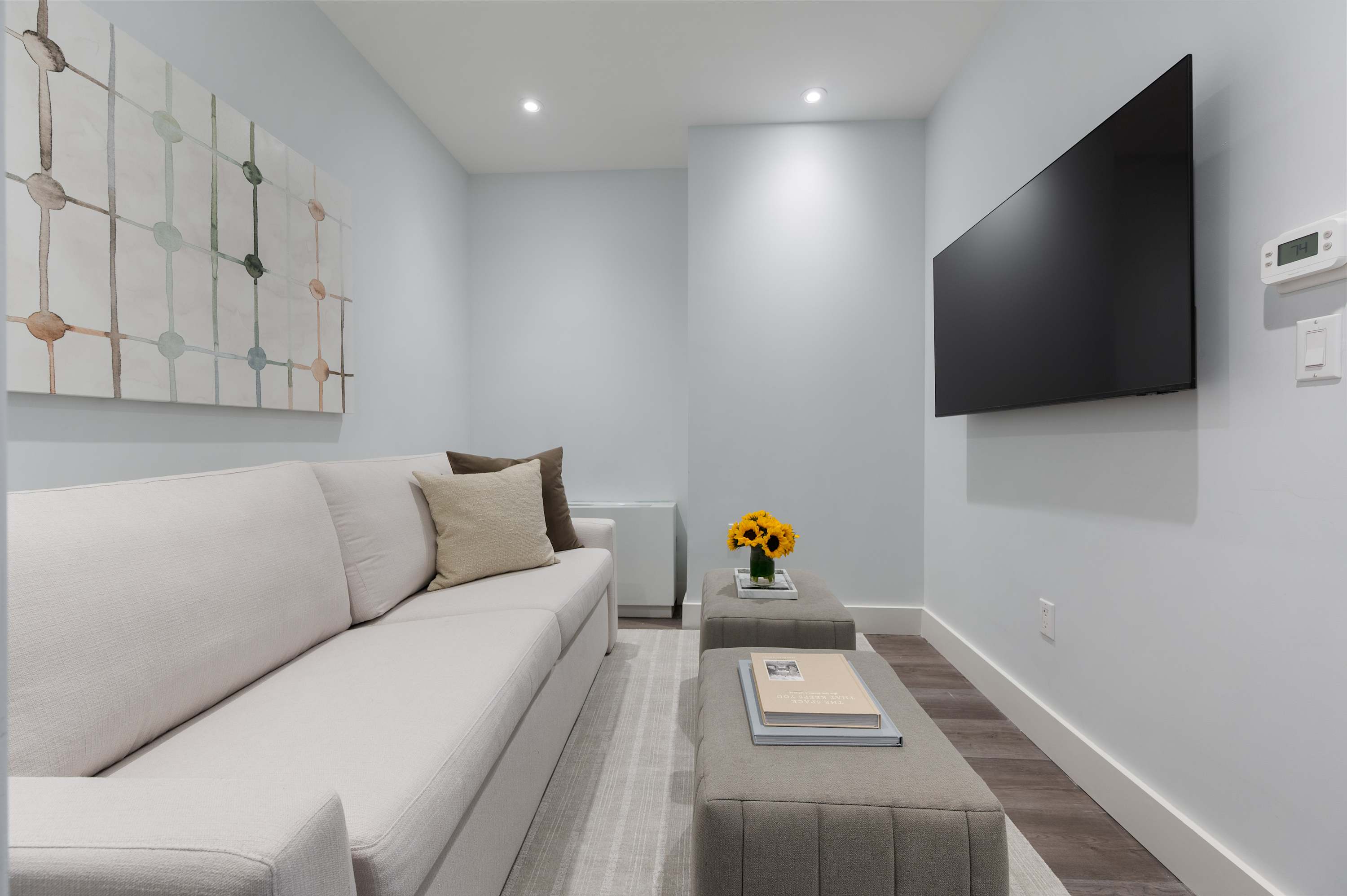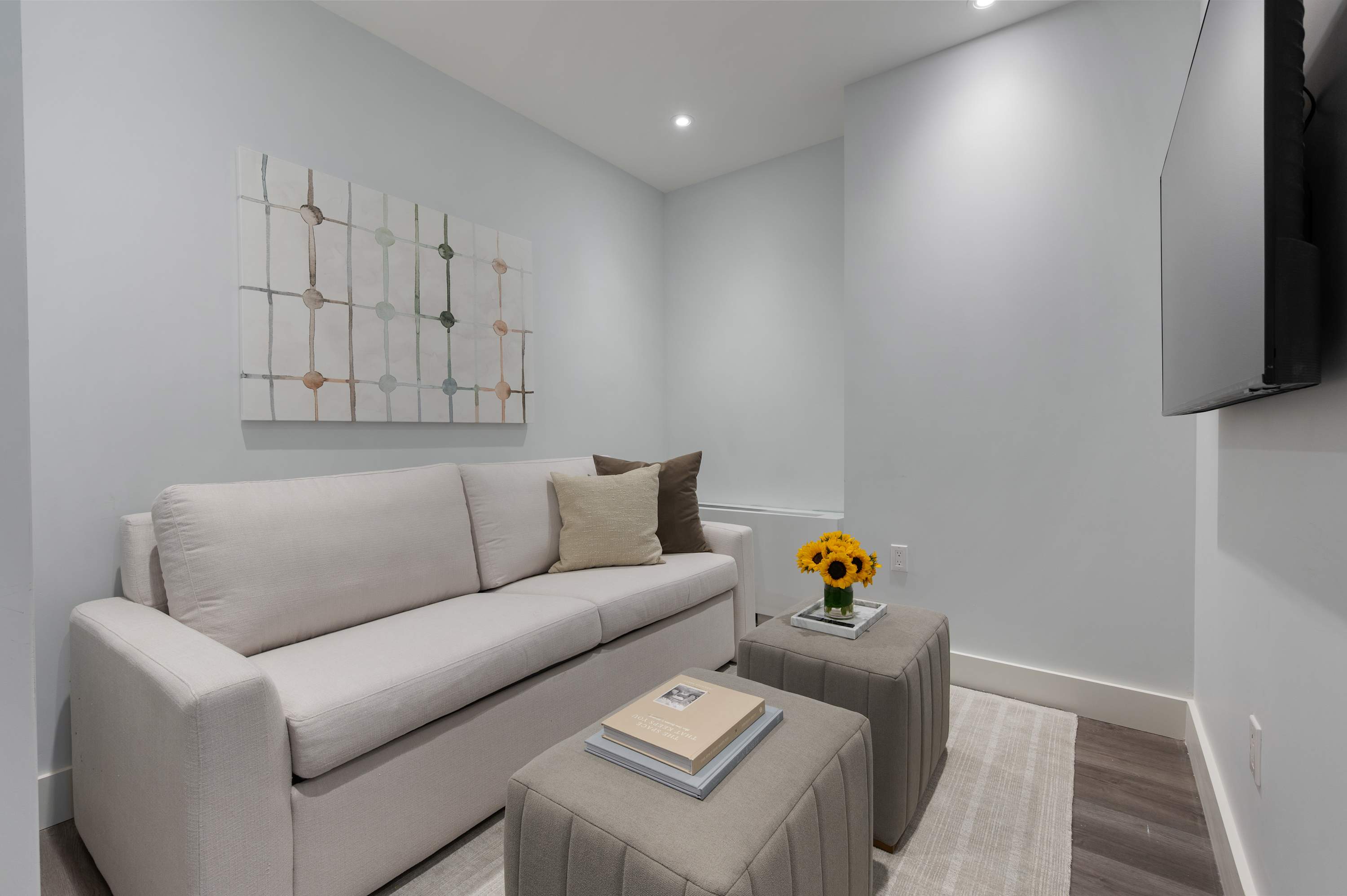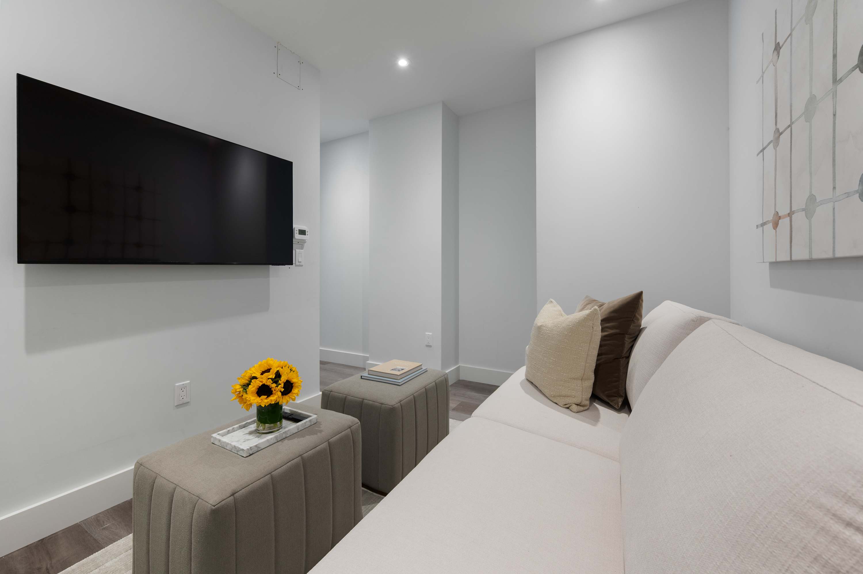 • Flat screen Smart TVs for streaming apps, high-speed WiFi, basic cable TV, and a dedicated workspace