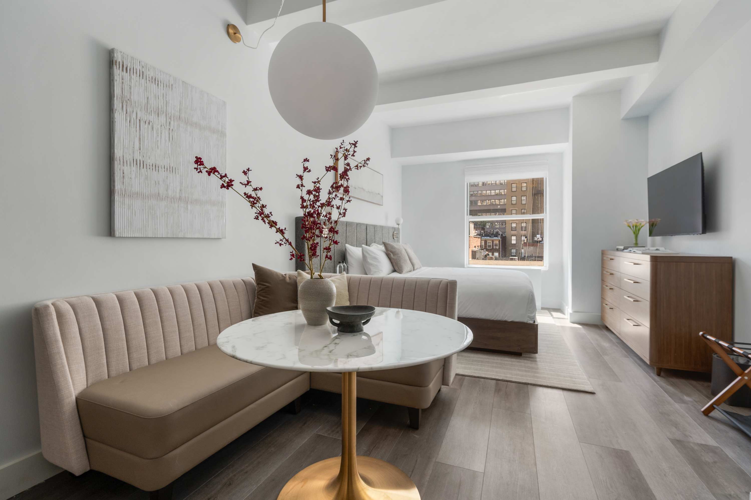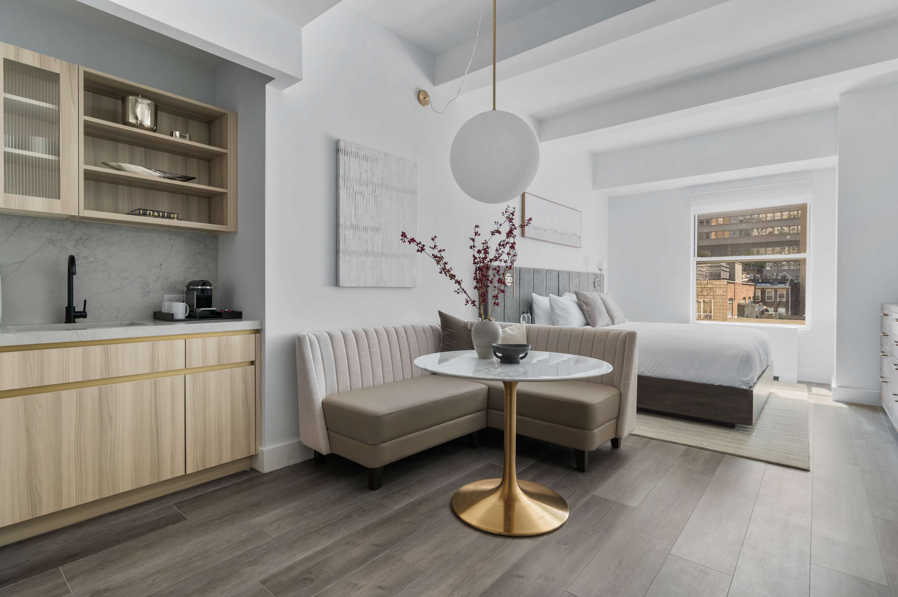 We’ve designed 17John Hotel to feel like more than just a place to stay—it’s a space to live. Whether you’re in town for a short trip or an extended stay, our rooms and amenities are tailored to provide comfort, convenience, and a sense of home in the middle of Manhattan. From open-air city views on the rooftop to the cozy lounge just steps from our rooms, every detail is meant to make your time here feel effortless. With practical touches like complimentary laundry and full kitchens in all rooms, you can focus on your plans—while we take care of the rest.