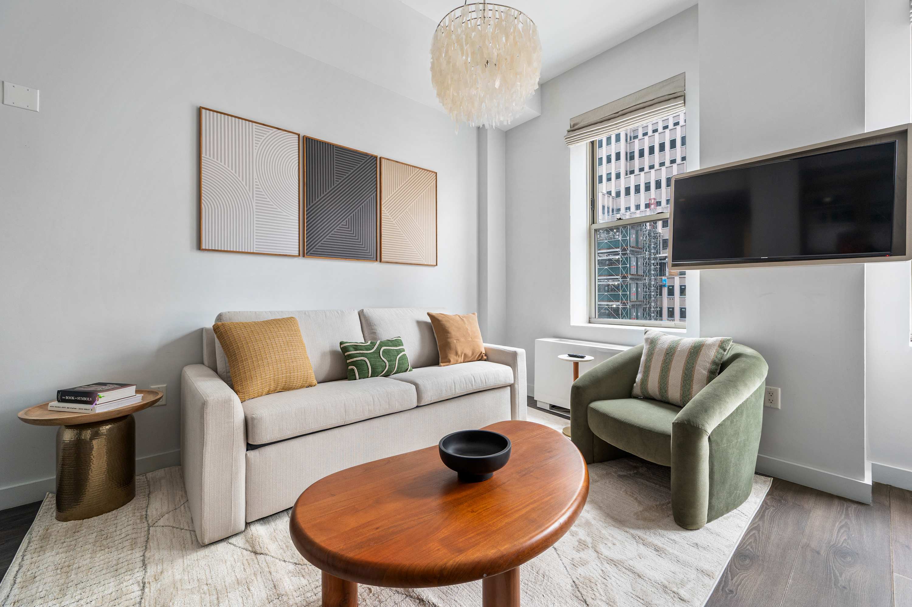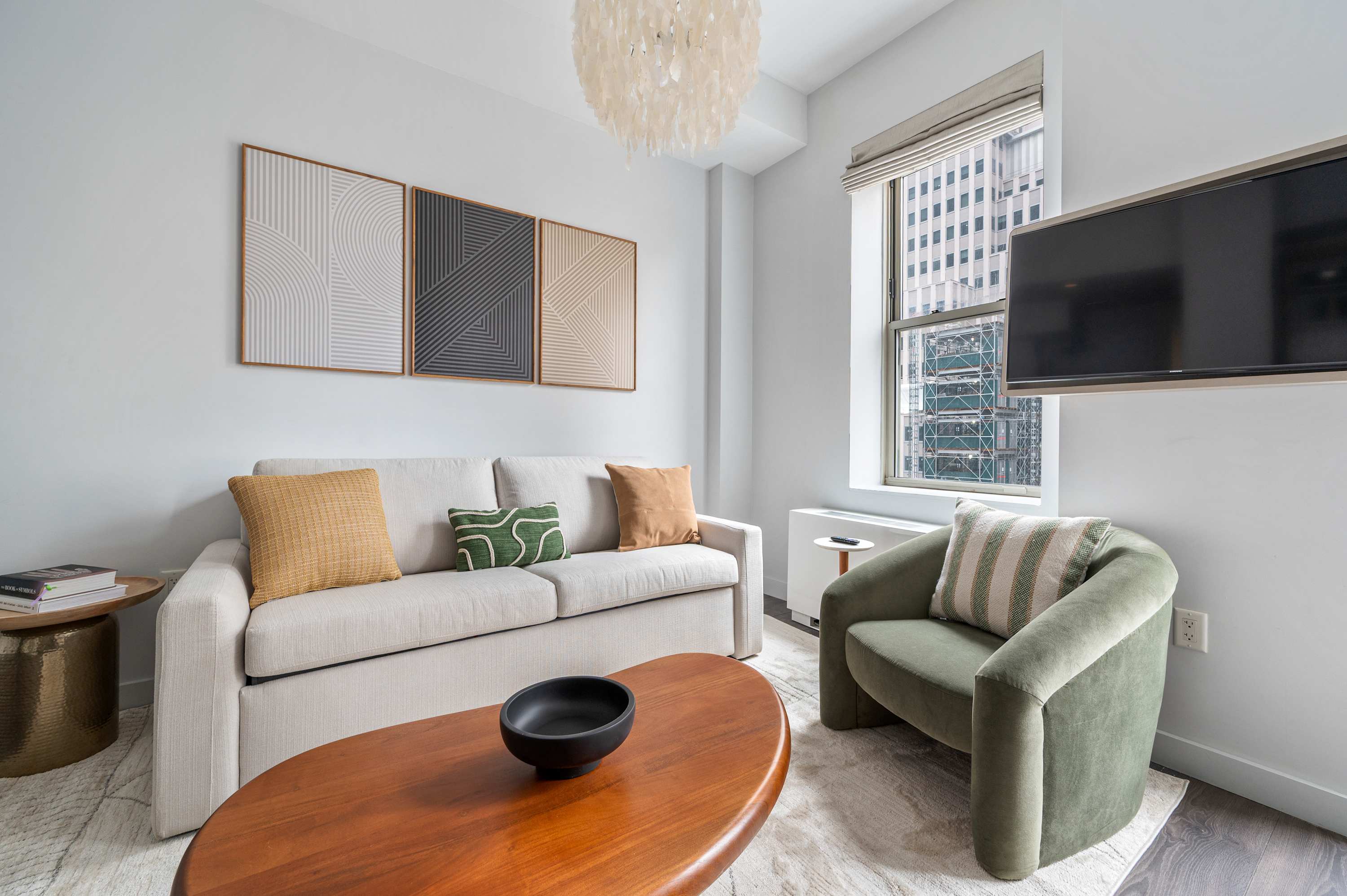 Stay at our BRAND NEW Luxury One Bedroom Apartment at 17John! Welcome to your home away from home in the heart of the Financial District with a fully equipped 500 sf apartment! Our modern accommodations offer the perfect blend of comfort, convenience, and city living. You’ll find everything you need just steps away. There’s a CVS conveniently located on-site for all your essentials, and multiple grocery stores are within a 2-minute walk, making it easy to stock up for your stay. Whether you’re preparing meals in your fully equipped kitchen or grabbing a quick snack, you’re always covered. Enjoy a stunning Manhattan view from our rooftop, or relax in the lounge on the seventh floor. The 9/11 Memorial & Museum is a must-see breathtaking tribute, only a five-minute walk away. Grab dinner at South Street Seaport or admire the historic ships. Find iconic monuments and stunning mid-century architecture on every block. Beyond the essentials, the neighborhood is a treasure trove of iconic landmarks, world-class dining, and cultural attractions. With excellent subway access at Fulton Street Station, you’re perfectly positioned to explore all of New York City. Whether you're here for business or leisure, 17John is your gateway to the best of NYC.