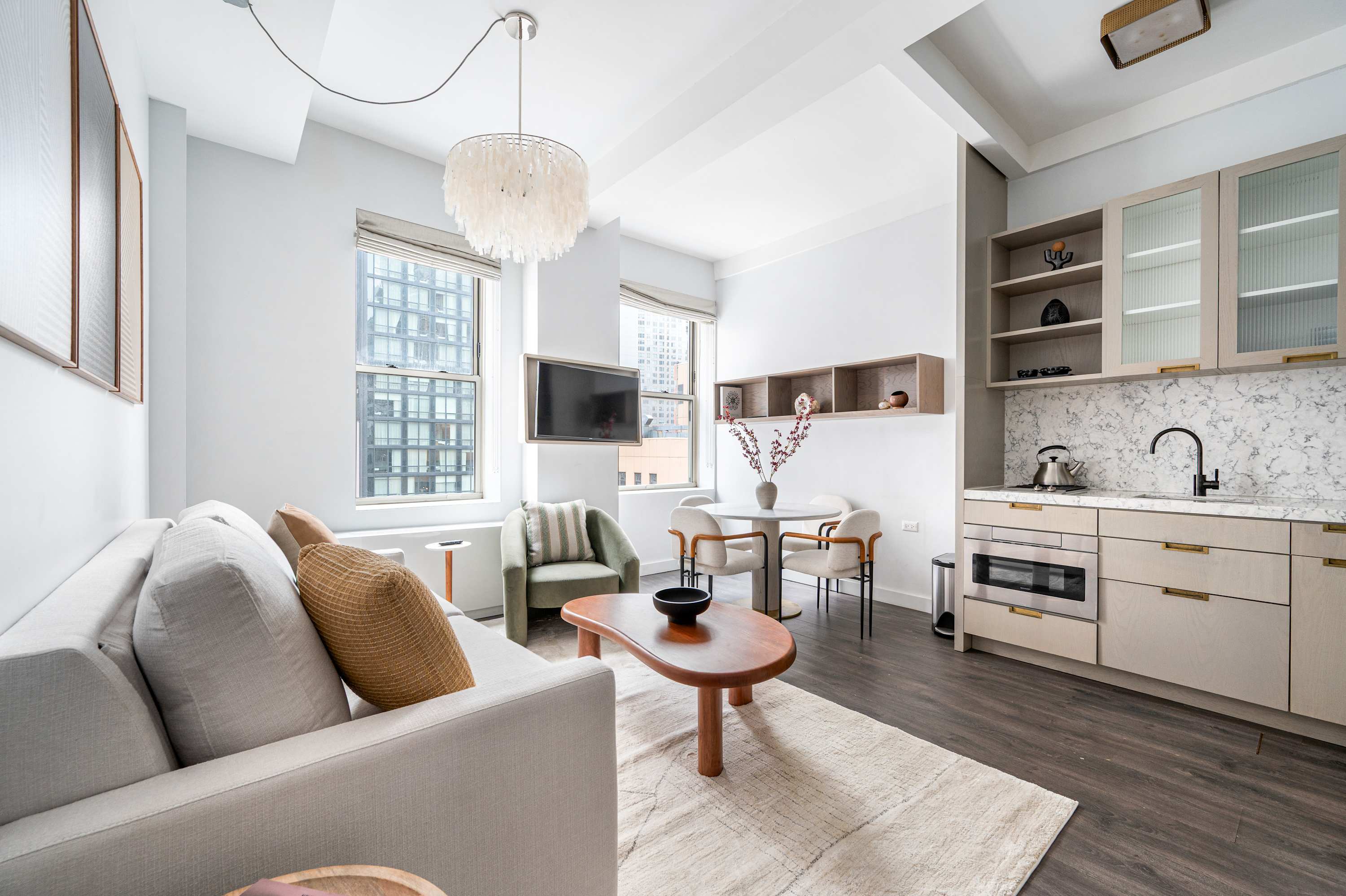 We’ve designed 17John Hotel to feel like more than just a place to stay—it’s a space to live. Whether you’re in town for a short trip or an extended stay, our rooms and amenities are tailored to provide comfort, convenience, and a sense of home in the middle of Manhattan. From open-air city views on the rooftop to the cozy lounge just steps from our rooms, every detail is meant to make your time here feel effortless. With practical touches like complimentary laundry and full kitchens in all rooms, you can focus on your plans—while we take care of the rest.