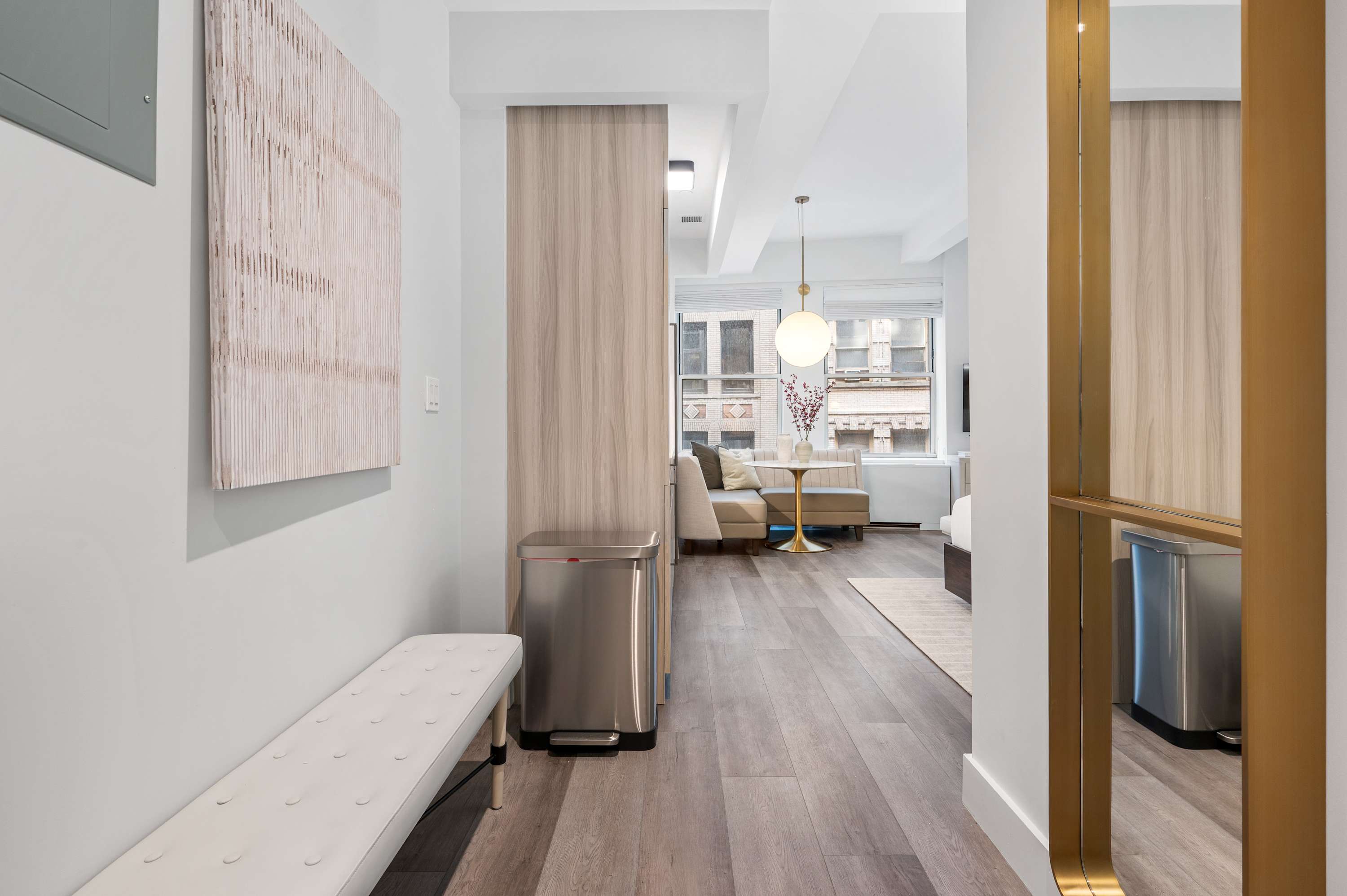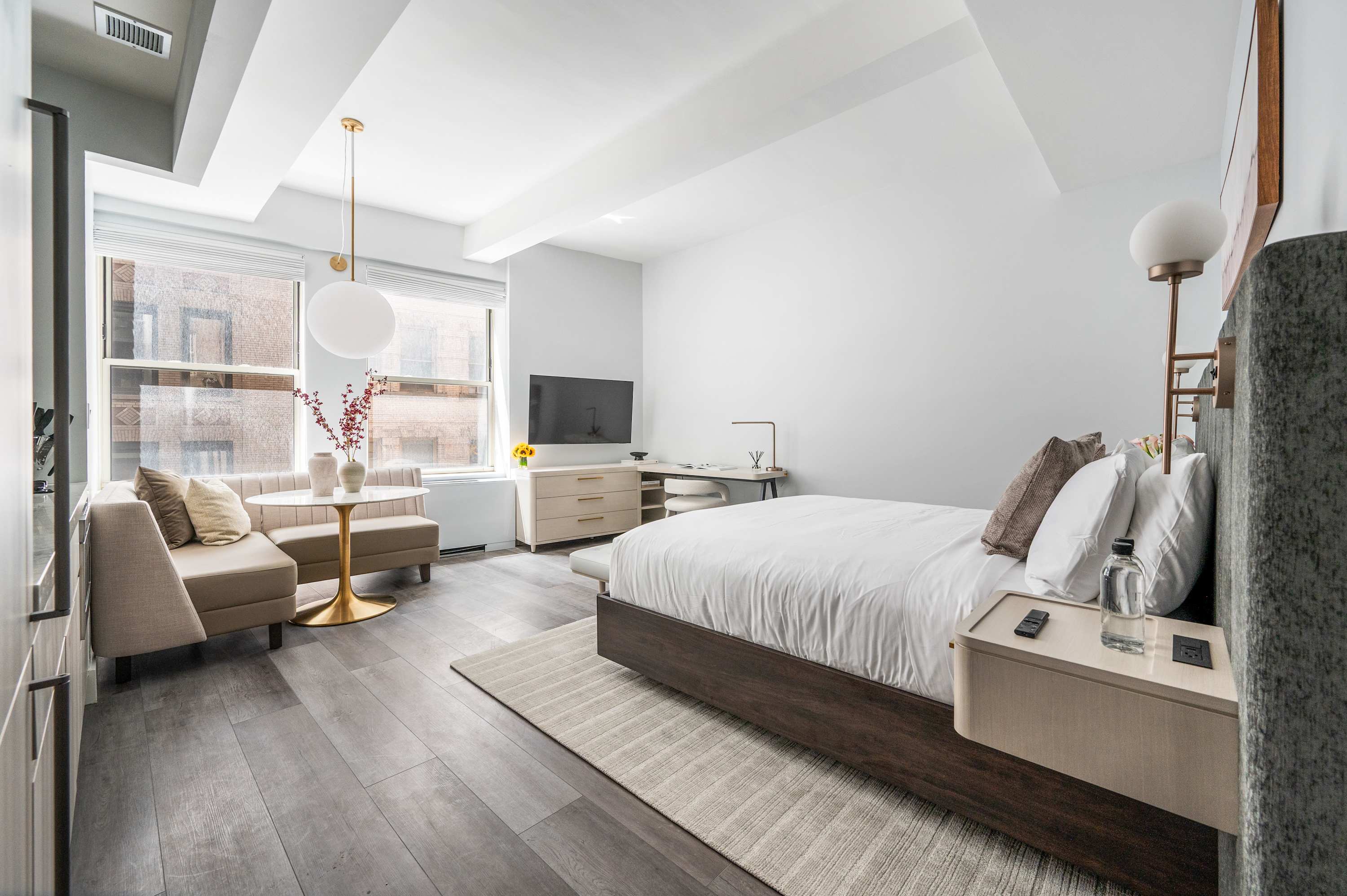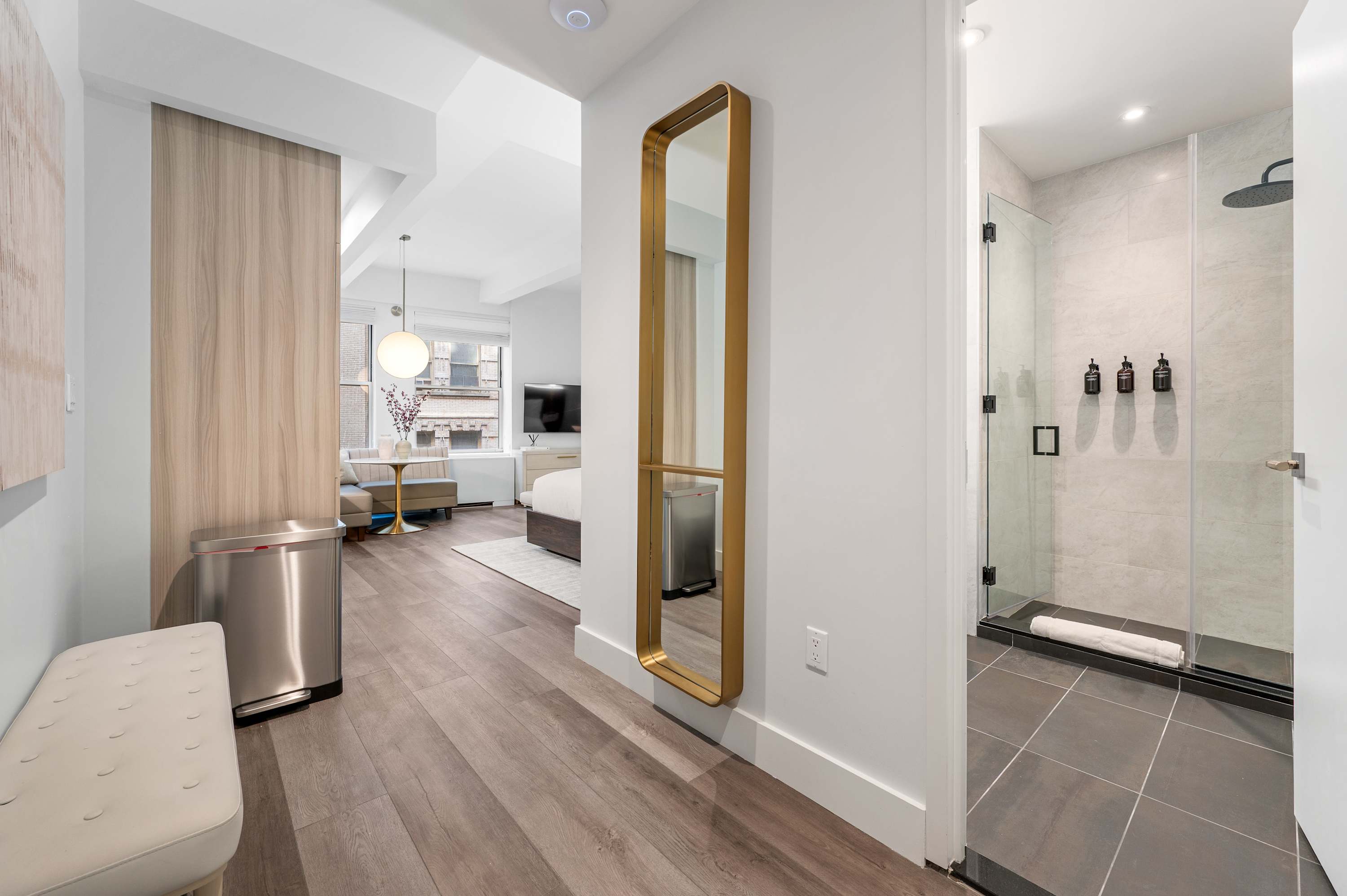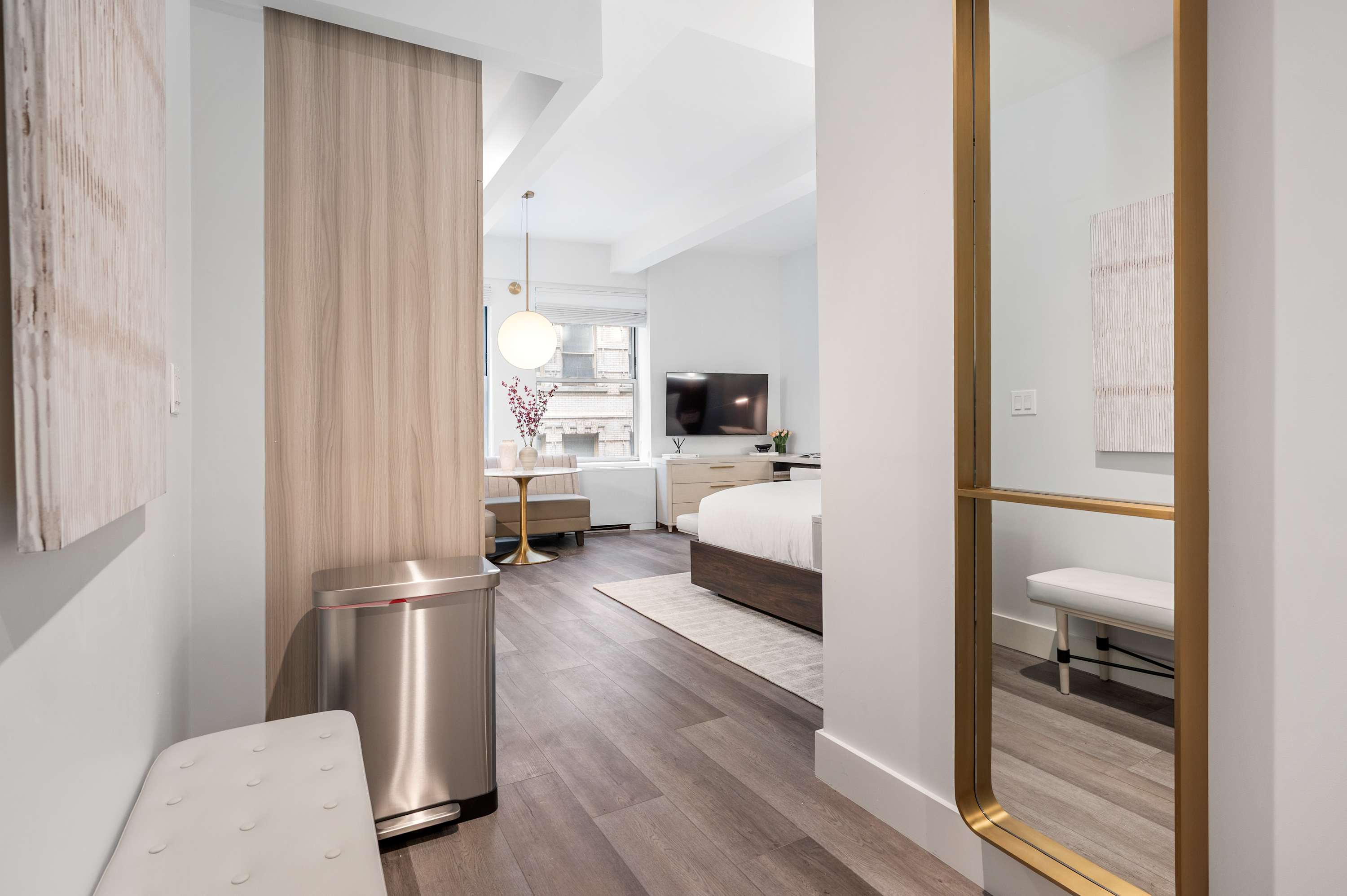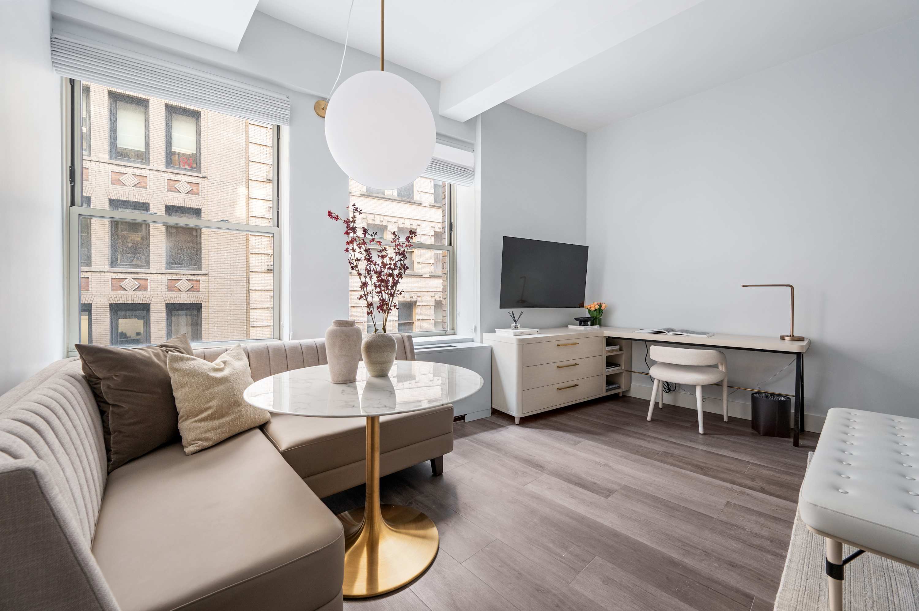 Stay at our BRAND NEW Premium King Studio at 17John! Welcome to your home away from home in the heart of the Financial District with a fully equipped 450 sf apartment! Our modern accommodations offer the perfect blend of comfort, convenience, and city living. You’ll find everything you need just steps away. There’s a CVS conveniently located on-site for all your essentials, and multiple grocery stores are within a 2-minute walk, making it easy to stock up for your stay. Whether you’re preparing meals in your fully equipped kitchen or grabbing a quick snack, you’re always covered. Enjoy a stunning Manhattan view from our rooftop, or relax in the lounge on the seventh floor. The 9/11 Memorial & Museum is a must-see breathtaking tribute, only a five-minute walk away. Grab dinner at South Street Seaport or admire the historic ships. Find iconic monuments and stunning mid-century architecture on every block. Beyond the essentials, the neighborhood is a treasure trove of iconic landmarks, world-class dining, and cultural attractions. With excellent subway access at Fulton Street Station, you’re perfectly positioned to explore all of New York City. Whether you're here for business or leisure, 17John is your gateway to the best of NYC.