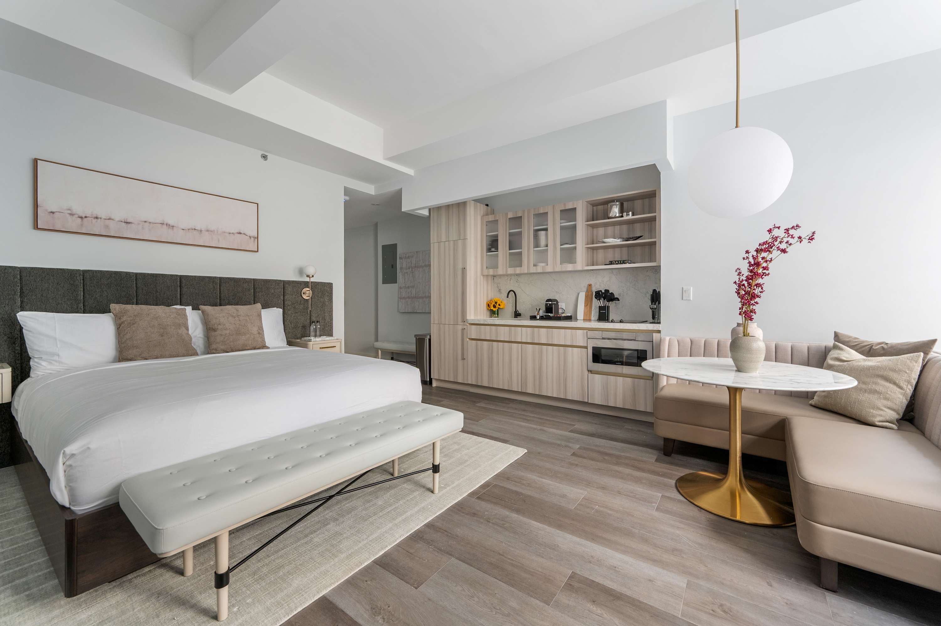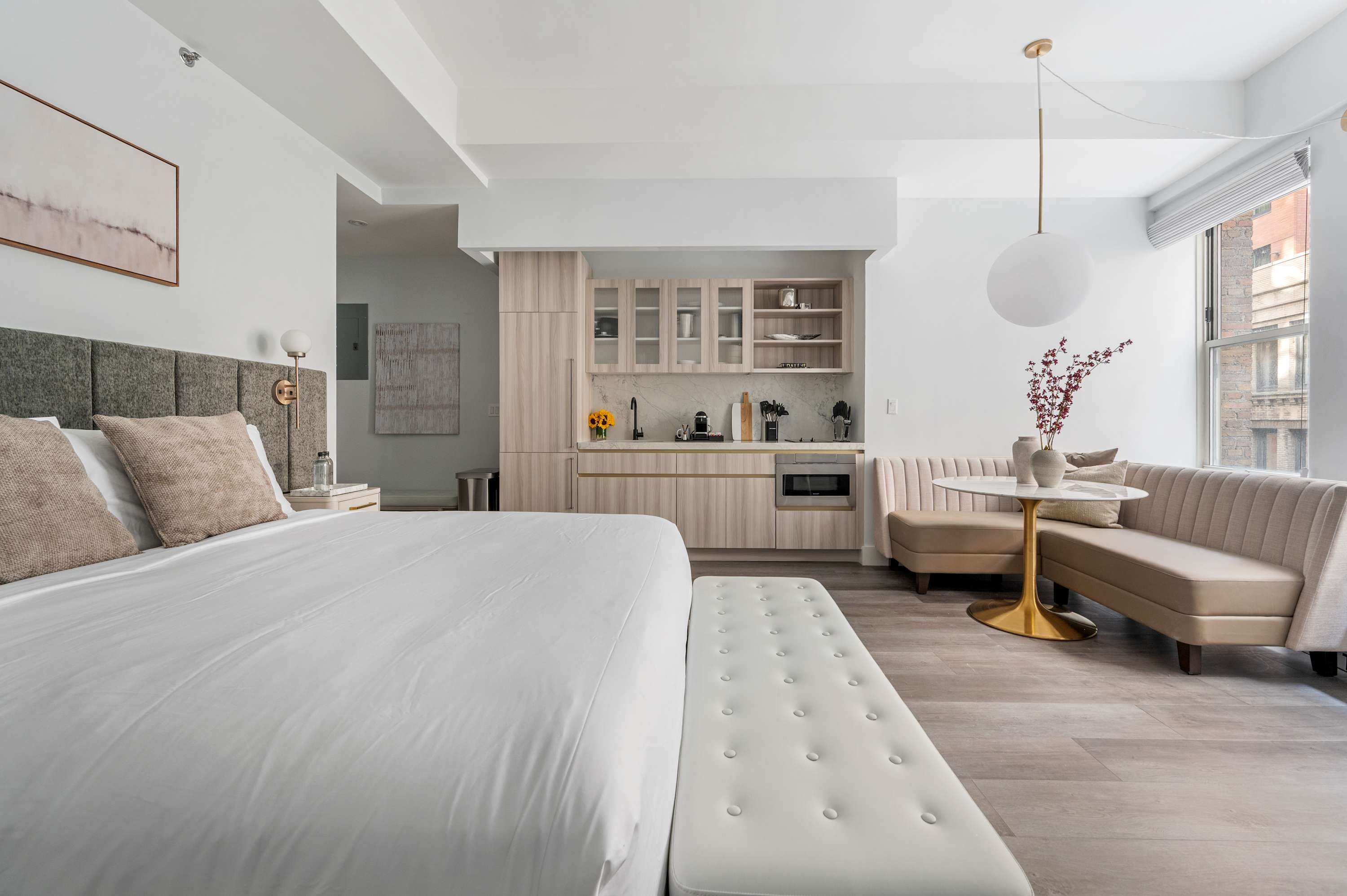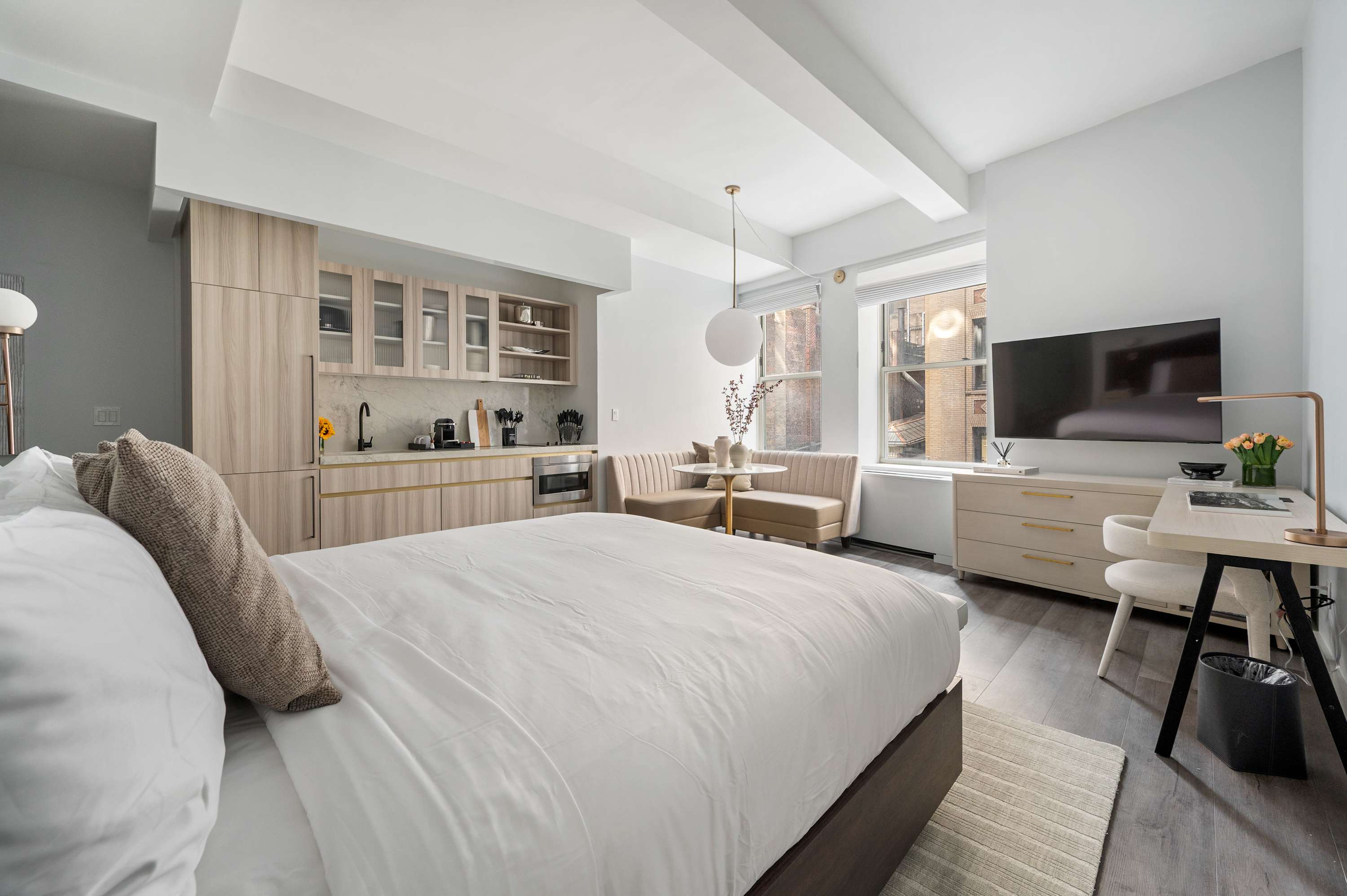 We’ve designed 17John Hotel to feel like more than just a place to stay—it’s a space to live. Whether you’re in town for a short trip or an extended stay, our rooms and amenities are tailored to provide comfort, convenience, and a sense of home in the middle of Manhattan. From open-air city views on the rooftop to the cozy lounge just steps from our rooms, every detail is meant to make your time here feel effortless. With practical touches like complimentary laundry and full kitchens in all rooms, you can focus on your plans—while we take care of the rest.