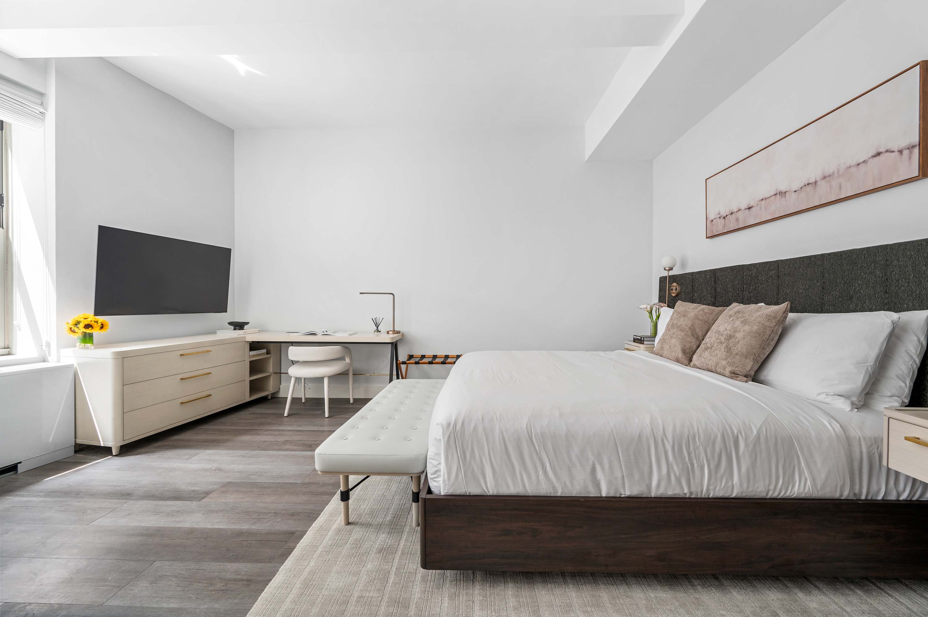 This elegant 1-Bedroom features a modern setting with lots of space, high ceilings and natural sunlight! The home is fully equipped with everything you'll need for a comfortable and supreme stay! From stainless steel appliances, modern renovated bathrooms, comfy beds, and all the essentials to make your stay in New York amazing!