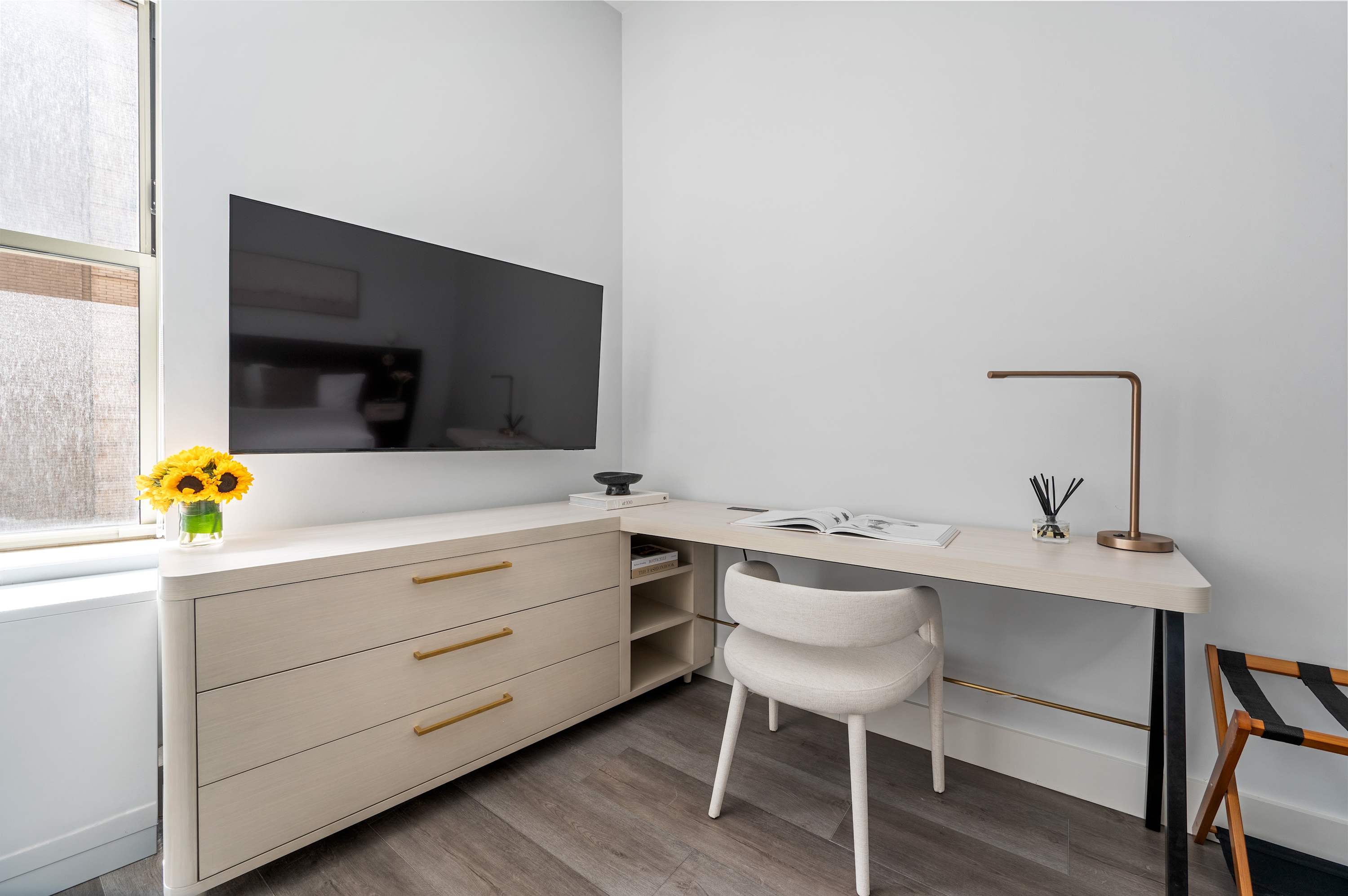 • Flat screen Smart TVs for streaming apps, high-speed WiFi, basic cable TV, and a dedicated workspace