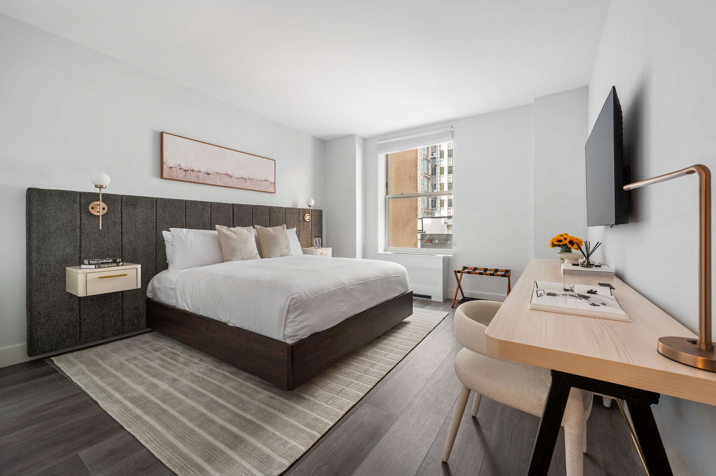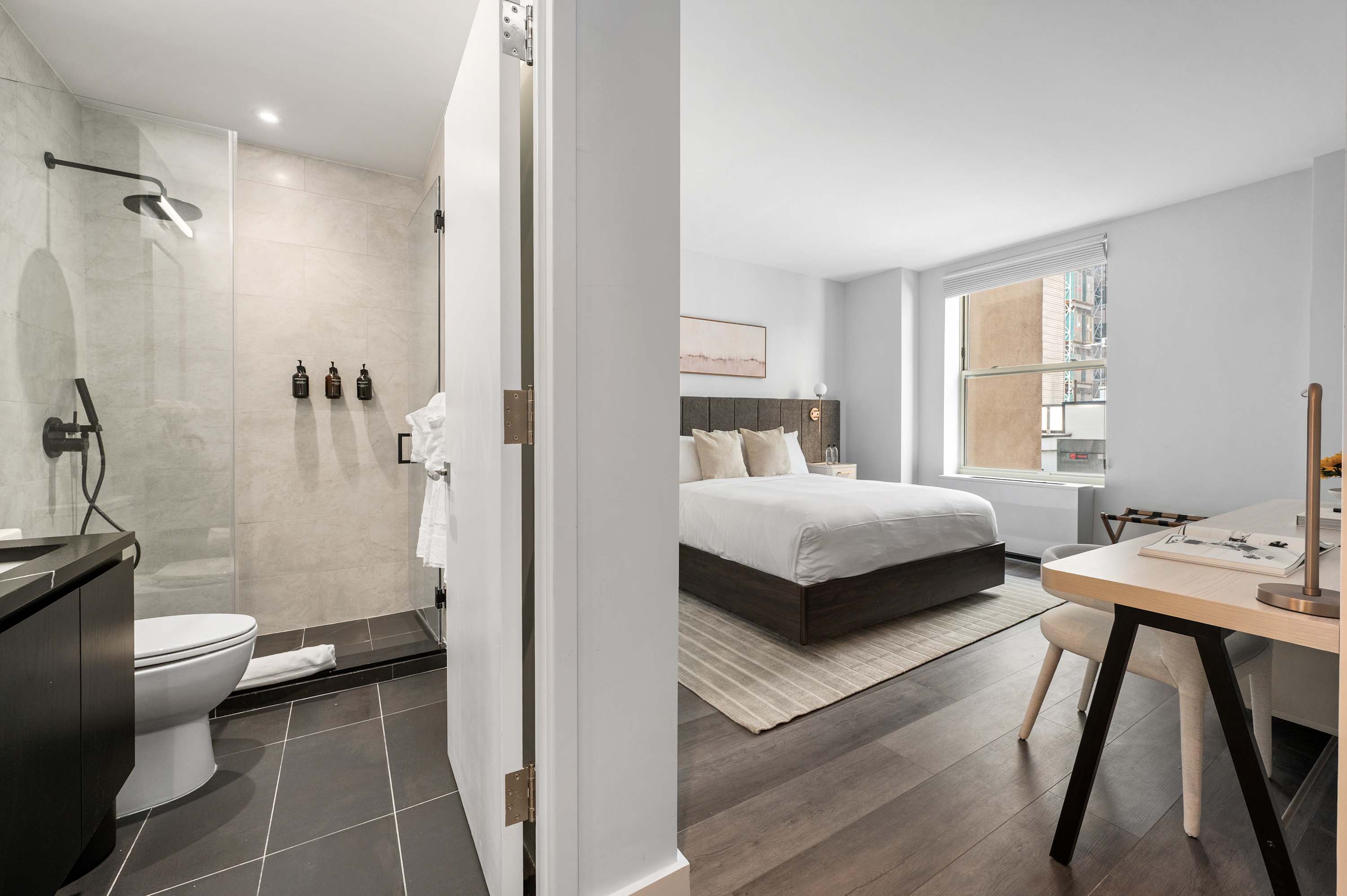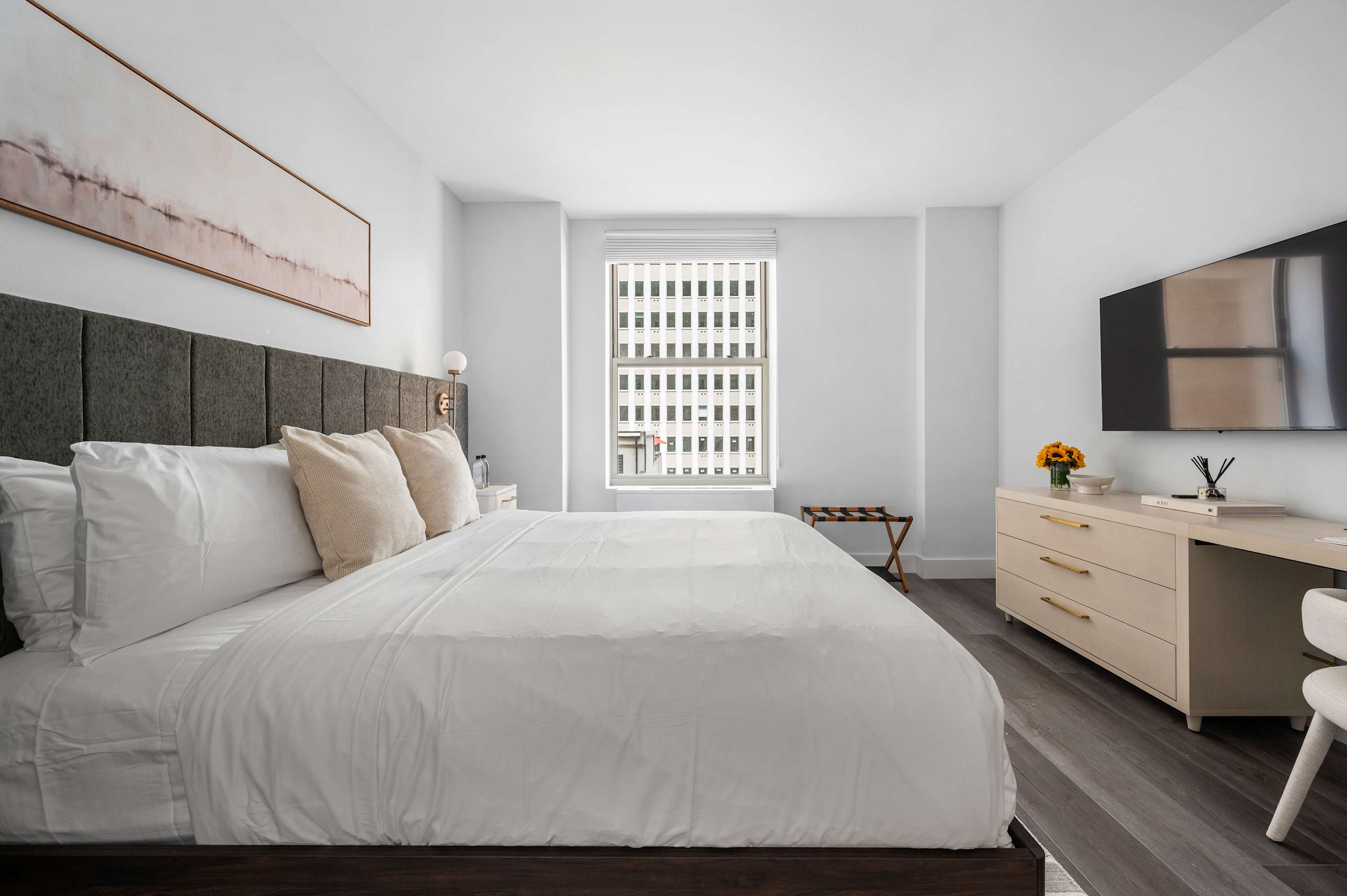 Stay at our BRAND NEW Superior King Studio at 17John! Welcome to your home away from home in the heart of the Financial District with a fully equipped 400 sf apartment! Our modern accommodations offer the perfect blend of comfort, convenience, and city living. You’ll find everything you need just steps away. There’s a CVS conveniently located on-site for all your essentials, and multiple grocery stores are within a 2-minute walk, making it easy to stock up for your stay. Whether you’re preparing meals in your fully equipped kitchen or grabbing a quick snack, you’re always covered. Enjoy a stunning Manhattan view from our rooftop, or relax in the lounge on the seventh floor. The 9/11 Memorial & Museum is a must-see breathtaking tribute, only a five-minute walk away. Grab dinner at South Street Seaport or admire the historic ships. Find iconic monuments and stunning mid-century architecture on every block. Beyond the essentials, the neighborhood is a treasure trove of iconic landmarks, world-class dining, and cultural attractions. With excellent subway access at Fulton Street Station, you’re perfectly positioned to explore all of New York City. Whether you're here for business or leisure, 17John is your gateway to the best of NYC.